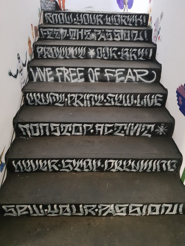 A special highlight of the festival was the urban calligraphy by Mose,on the interior stairs, whose intricate lettering added a sophisticated touch to the mix. Meanwhile, Ioana Truşcă’s mosaic installations mesmerized attendees with their detailed patterns, creating an interactive and immersive experience that connected traditional and modern artistic forms.