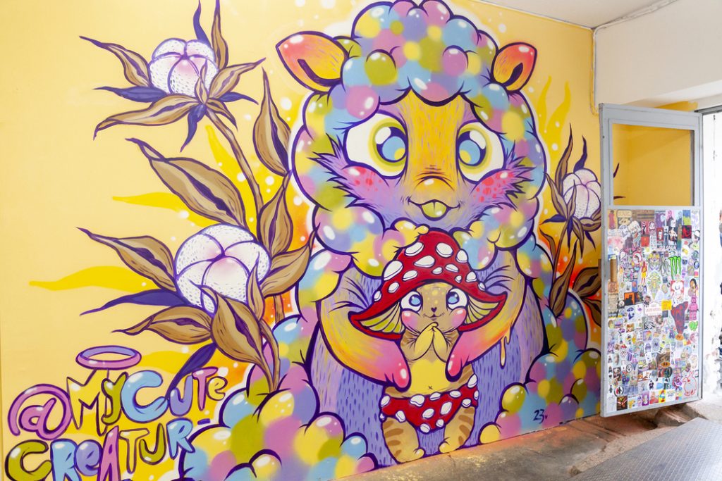One of the standout features was the diverse range of Street Art styles, including Stickers and Paste-Up Collages that transformed the venue into a dynamic, colorful space. The festival’s walls came alive with intricate graffiti works by HopaOne, whose unique flair brought urban energy, inspired by the materials that Nod Makerspace creators use and are surrounded by: wood, metal, 3D printers, water. Stunning murals painted by talented artists like My Cute Creatures, Ksele, and Ilustromania further enriched the atmosphere, adding layers of visual storytelling across the venue.